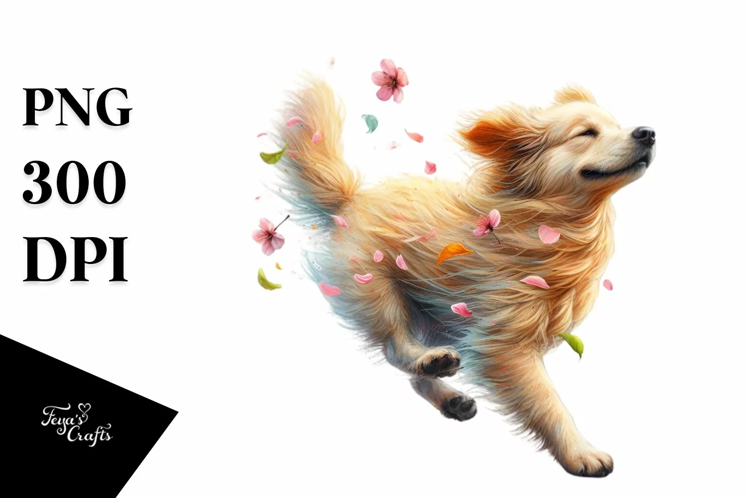 Similar Design Products to Dog Tumbling with Spring Petals in the Wind | Clipart
