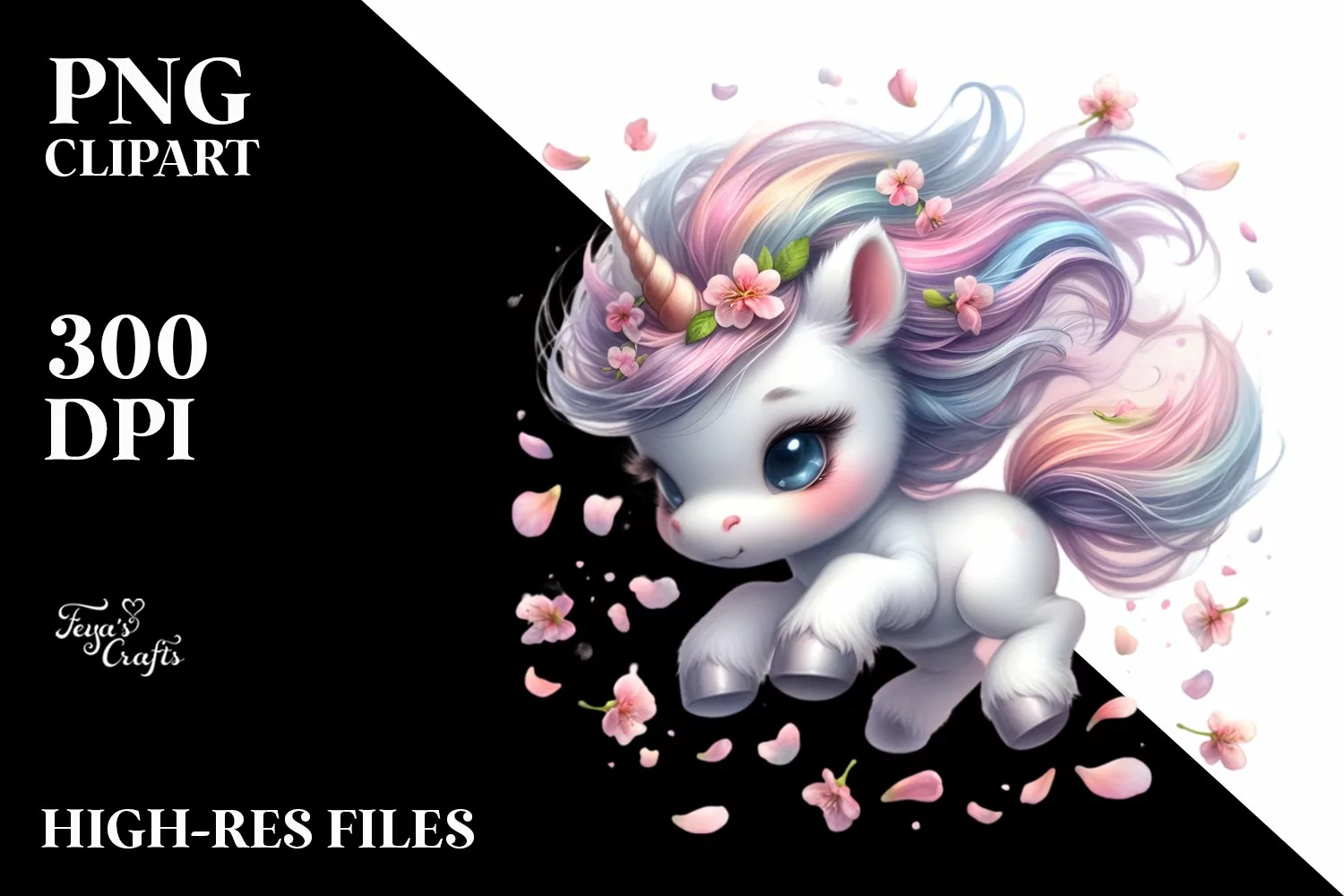 Cute Unicorn Tumbling with Spring Petals In the Wind |