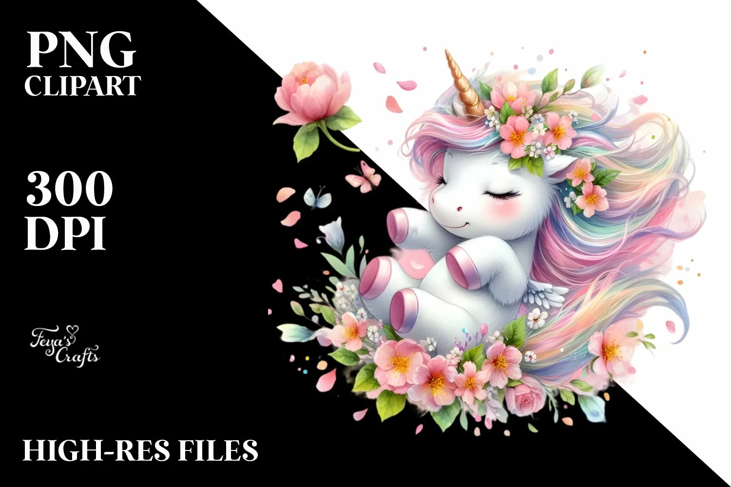 Baby Unicorn Tumbling with Spring Petals