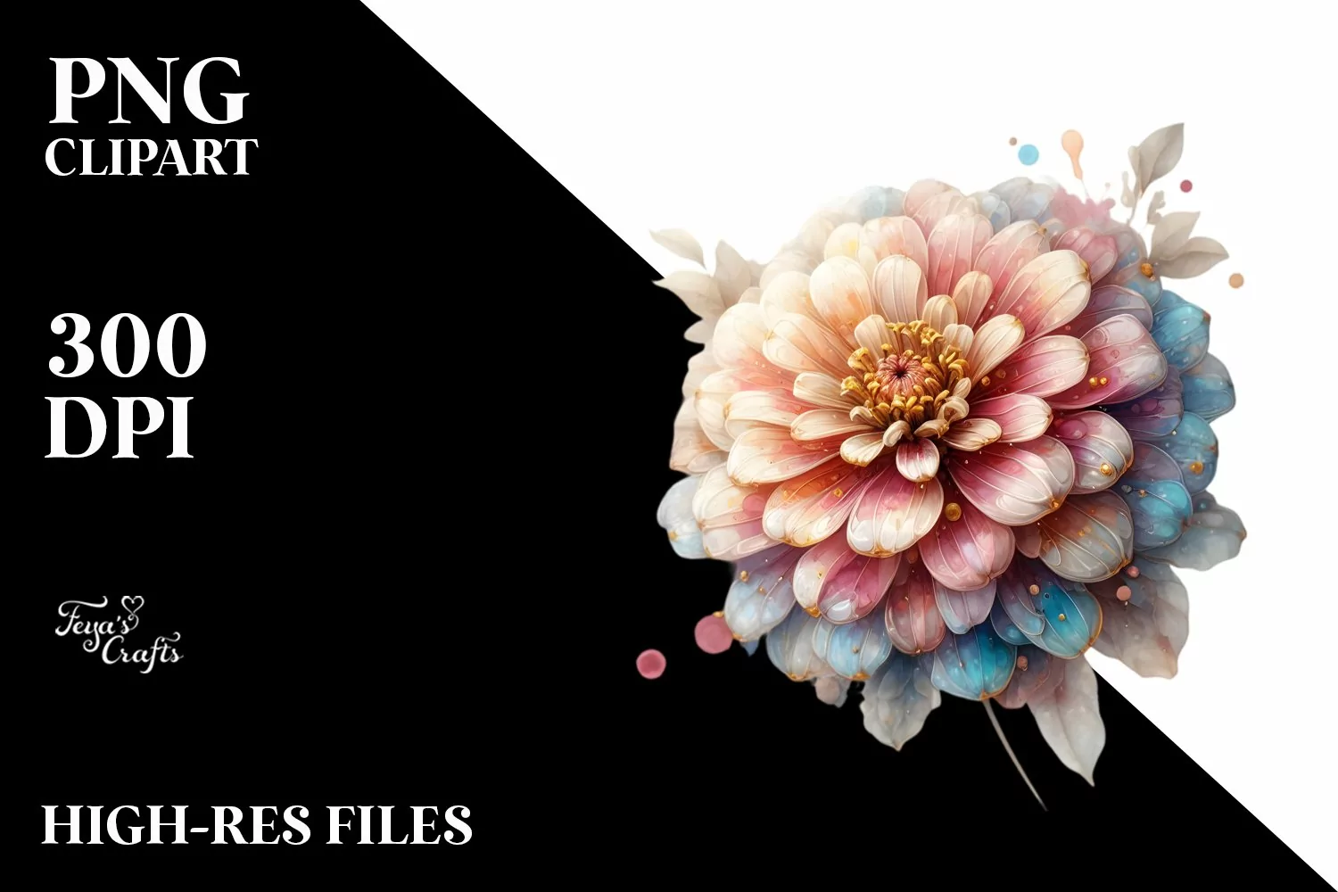 Watercolor Sticker Summer Easter Flower Golden Glass Mothersday Sublimation Zinnia