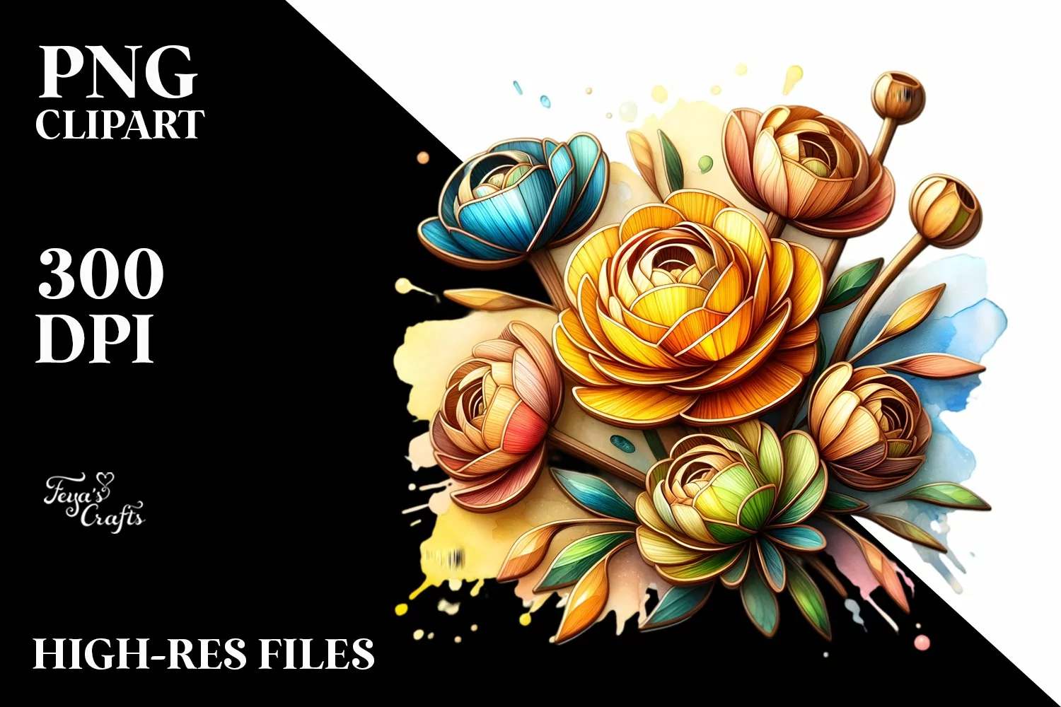 Wooden Stained Ranunculus Watercolor | Clipart