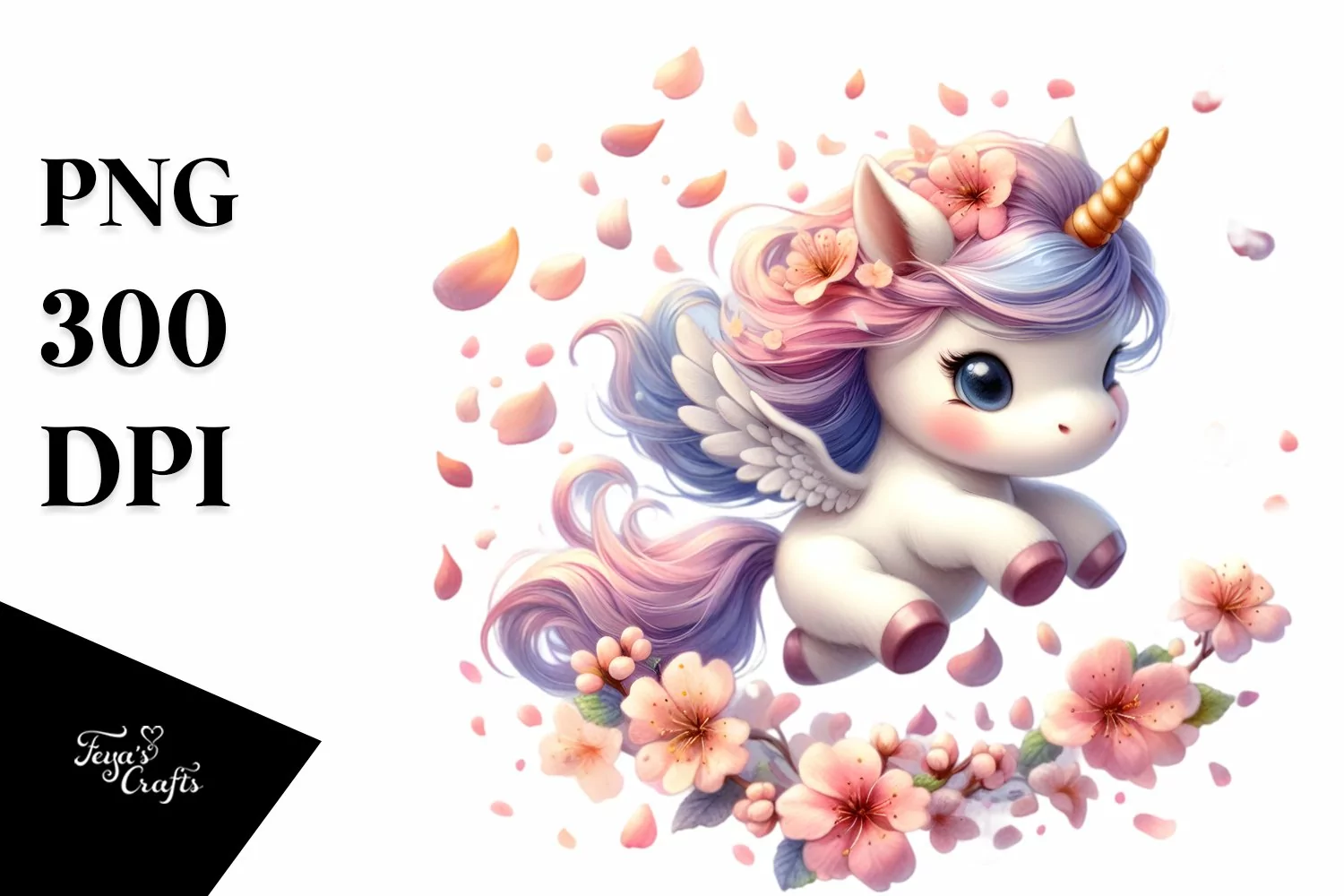 Tumbling Spring Petals Unicorn | Sublimation | Clipart example image 1