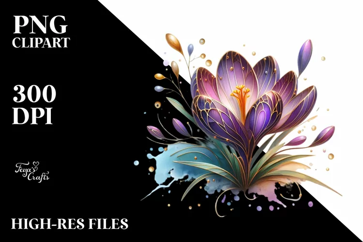 Golden Stained Crocus | Sublimation | Clipart