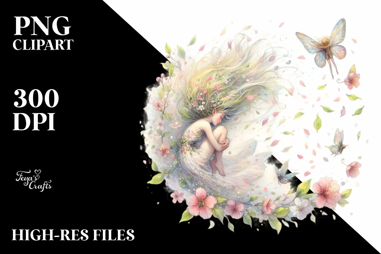 Fairy Tumbling with Spring Petals | Sublimation | Clipart