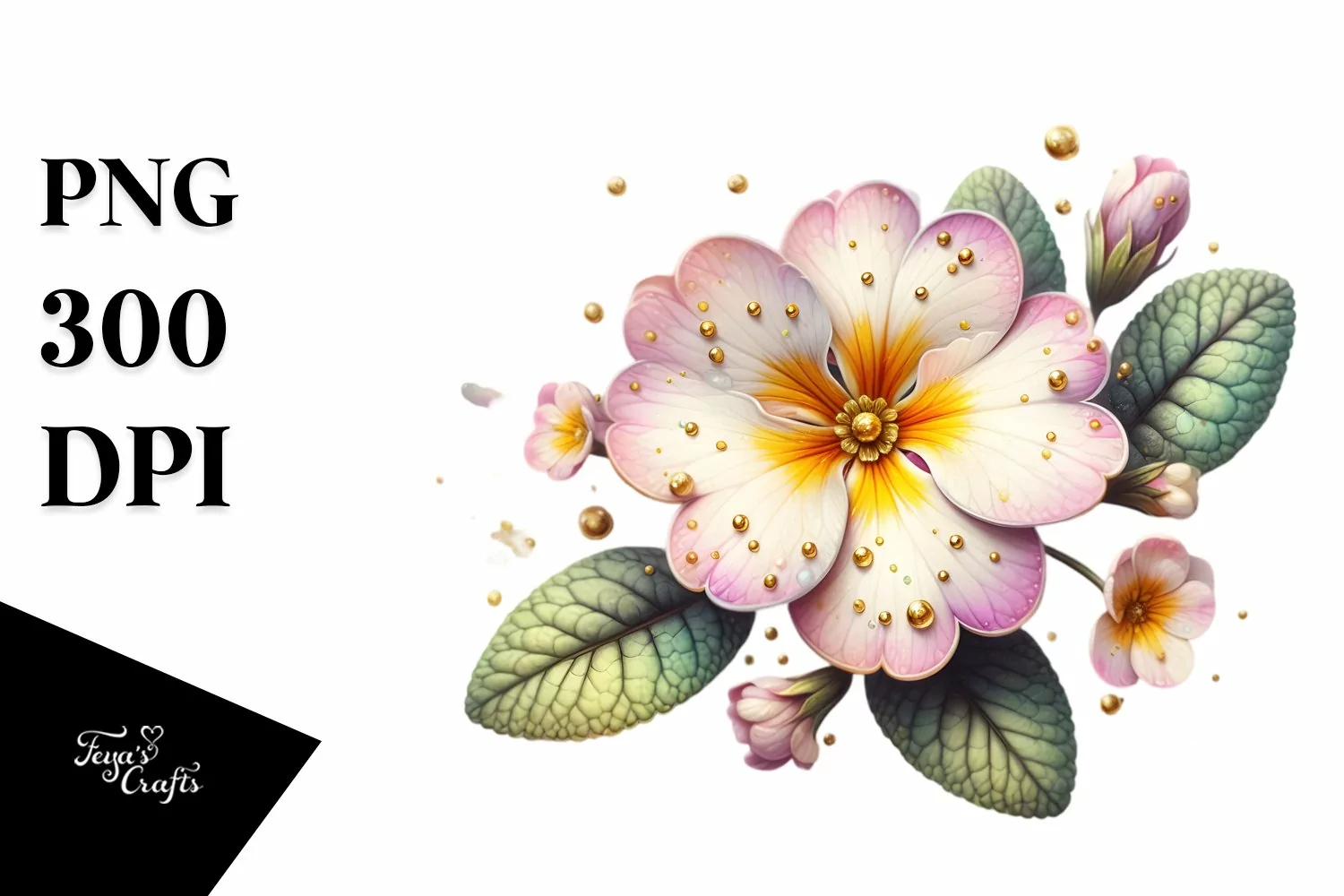 Glossy Primrose Shiny Golden Watercolor Splash | Clipart