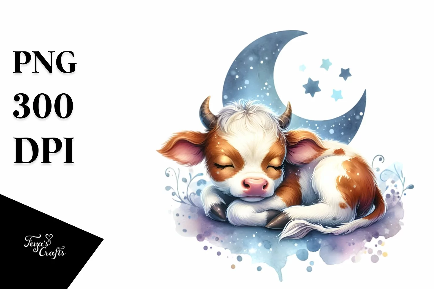 Similar Design Products to Colorful Small Baby Cow Sleeping Moon Whimsical Clipart