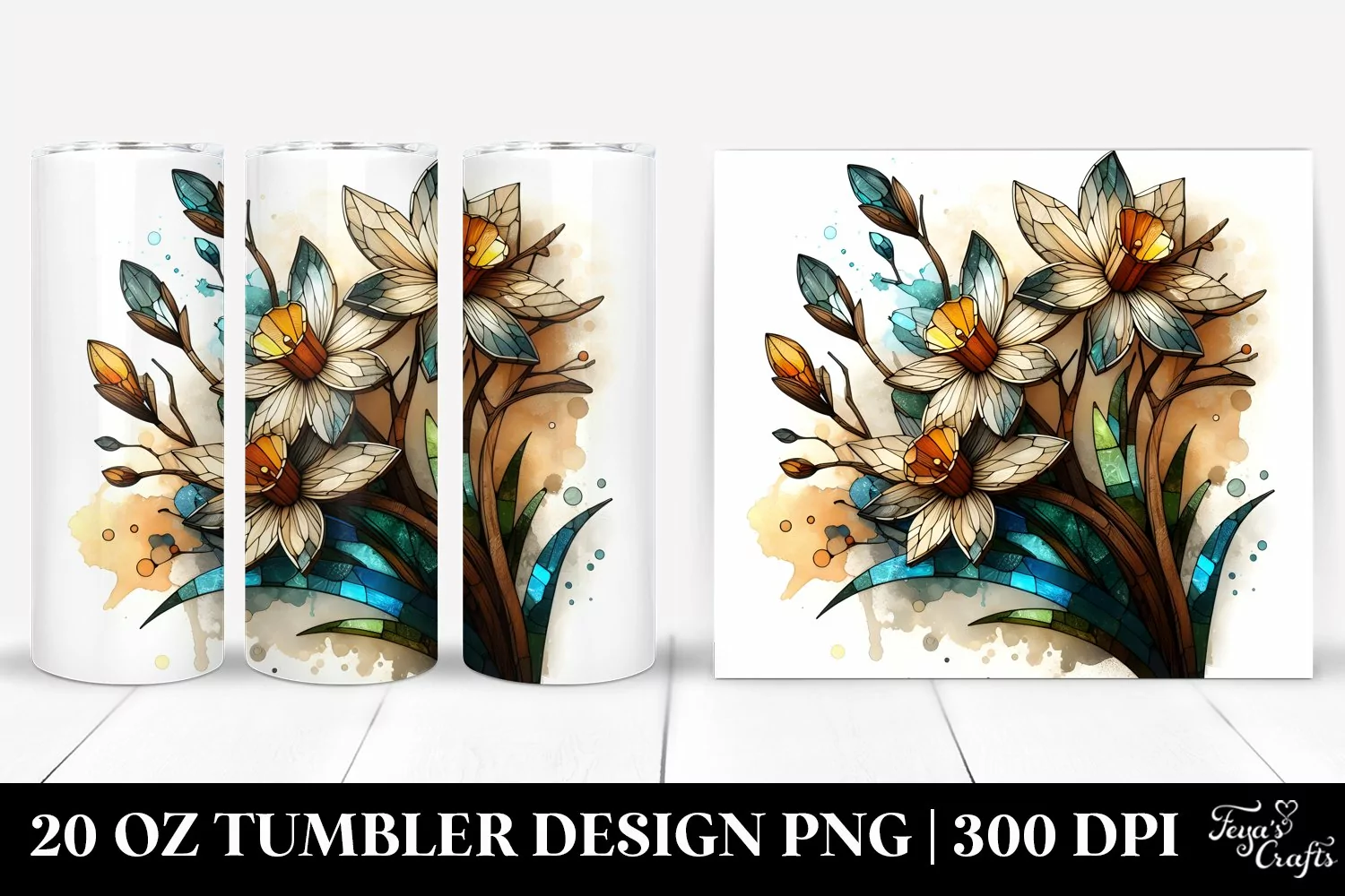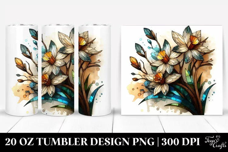 Sticker Summer Easter Flower Wooden Abstract Sublimation Tumbler Narcissus Stainedglass