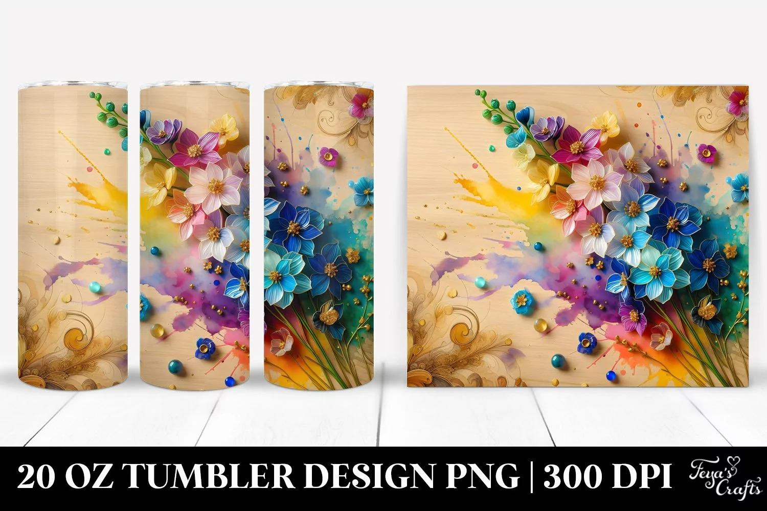 Similar Design Products to 20 Oz Tumbler Sublimation | Colorful Delphinium Wooden