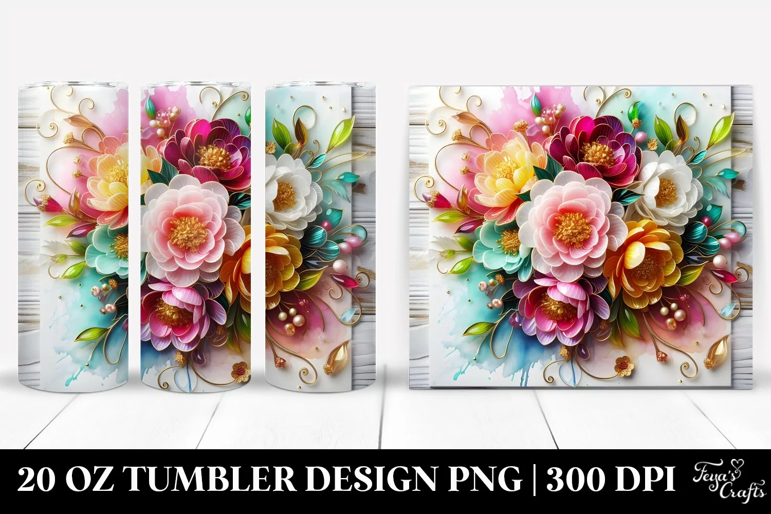 20 Oz Tumbler Sublimation | Colorful Peonies on Wooden example image 1
