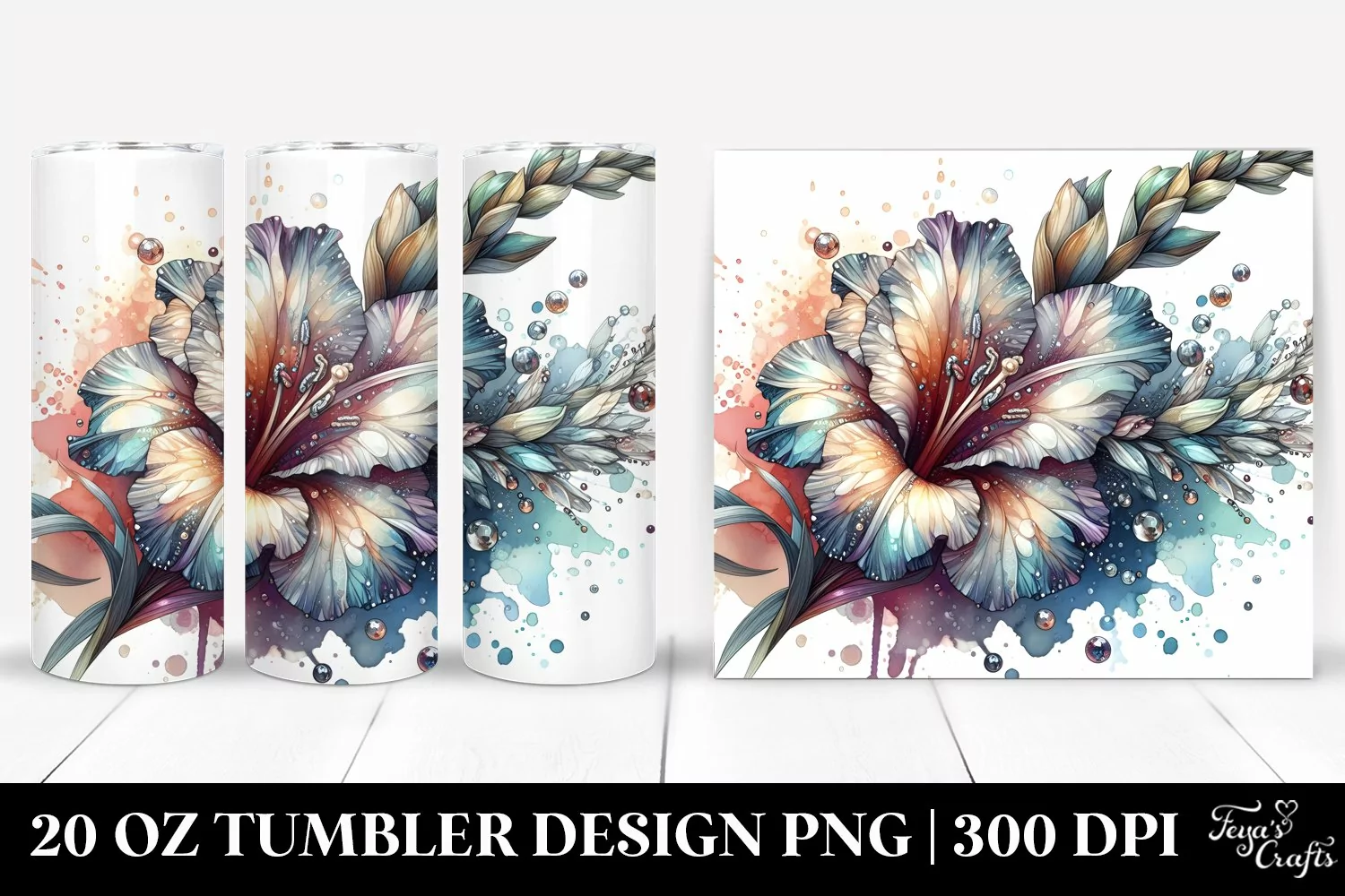 20 Oz Tumbler Sublimation | Shiny Gladiolus with Metallic example image 1