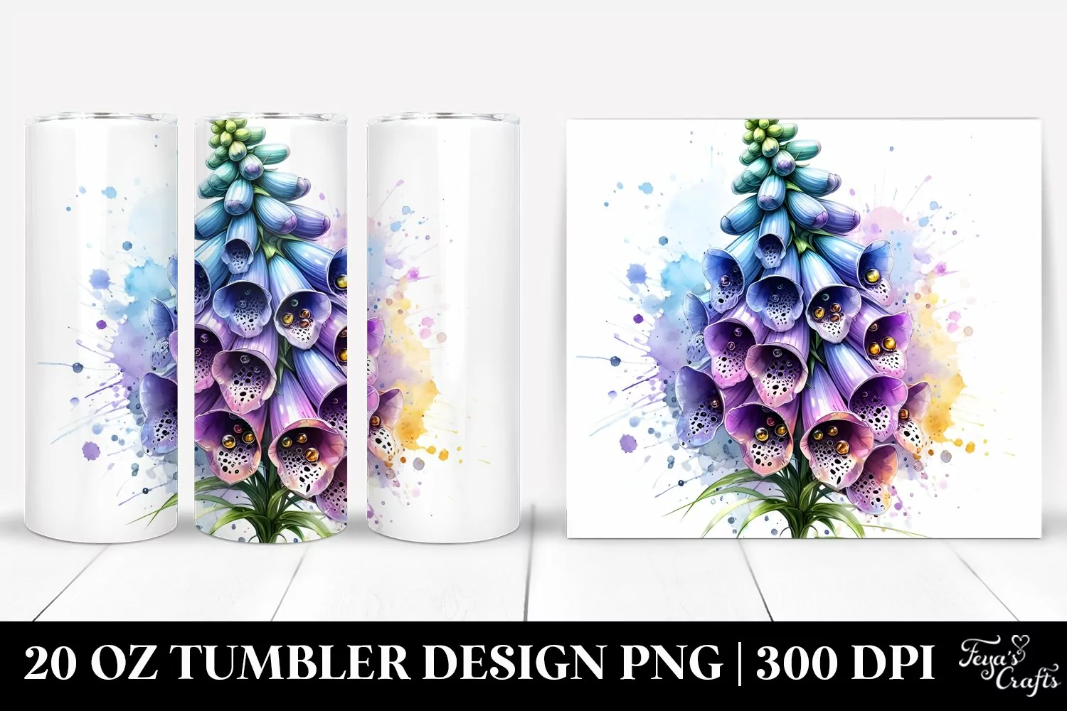 Watercolor Sticker Summer Easter Flower Glass Sublimation Tumbler Metalic Foxglove