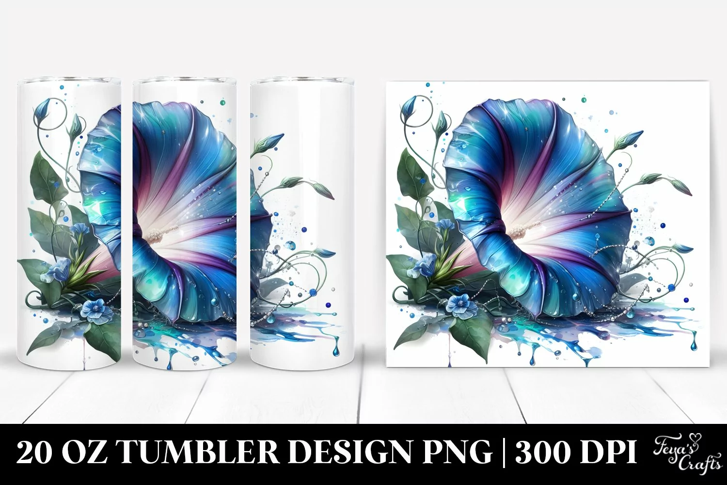 Watercolor Sticker Summer Easter Flower Glass Sublimation Tumbler Metalic Morningglory