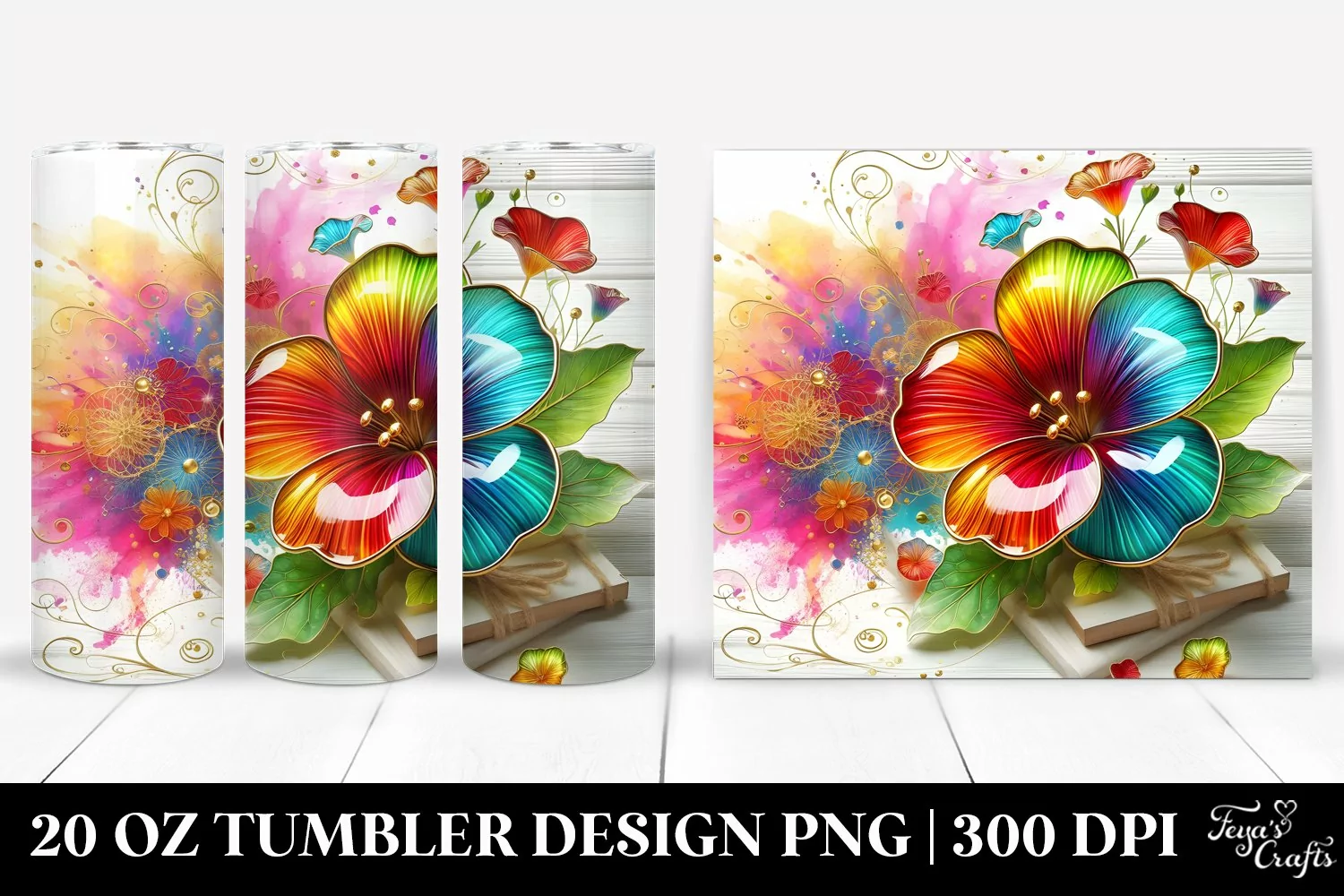 Sticker Summer Easter Flower Sublimation Tumbler Whitebackground Nasturtium Watercolorsplash Metallicinsertions