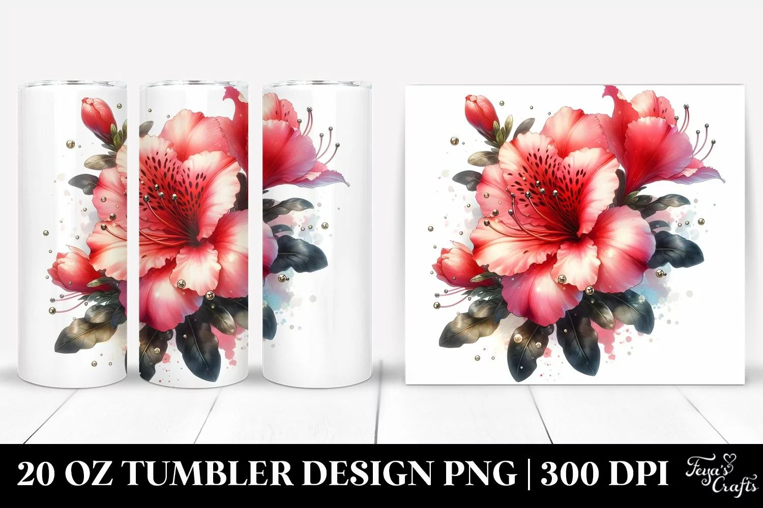Shiny Metallic Watercolor Azalea Tumbler Design example image 1