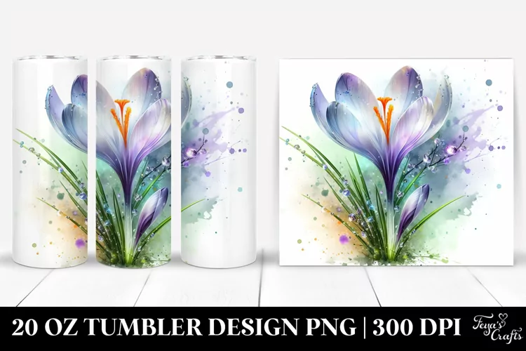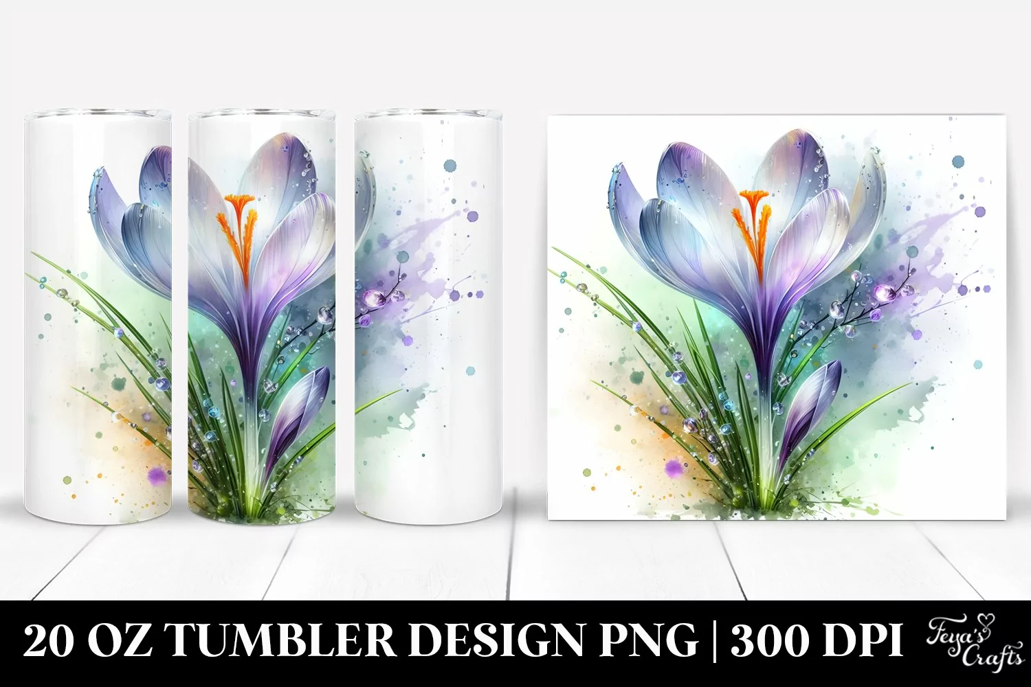 Shiny Metallic Watercolor Crocus Tumbler Design example image 1