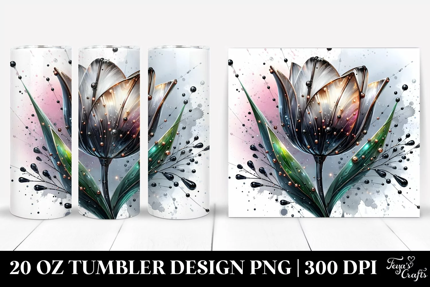 Shiny Metallic Watercolor Tulip Tumbler Design