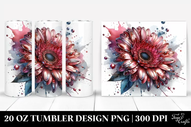 Glossy Metallic Watercolor Gerbera Tumbler Design example image 1