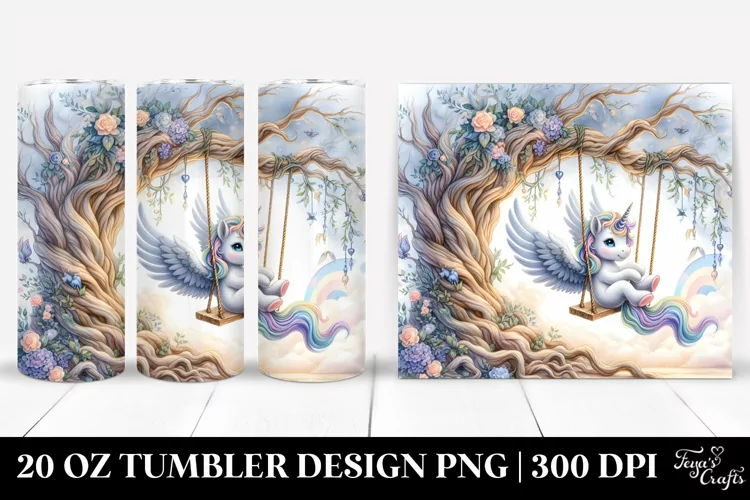 20 Oz Tumbler Sublimation | cute baby unicorn playing