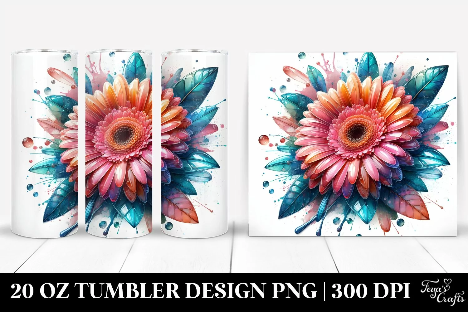 20 Oz Tumbler Sublimation | Gerbera Watercolor Splash example image 1