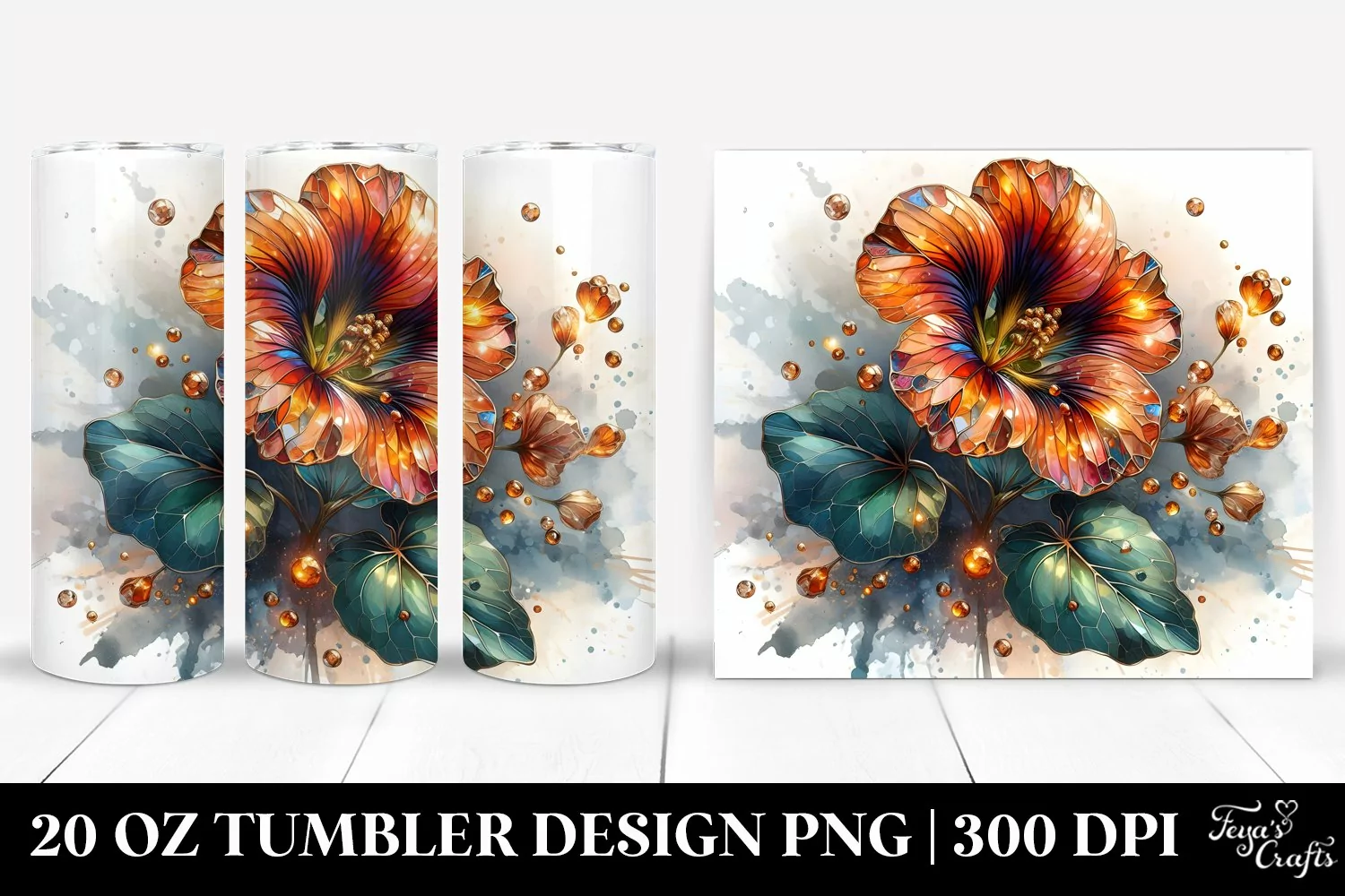 20 Oz Tumbler Sublimation | Metalic Nasturtium Watercolor example image 1