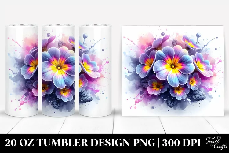 Watercolor Sticker Summer Easter Flower Glossy Glass Sublimation Primrose Tumbler