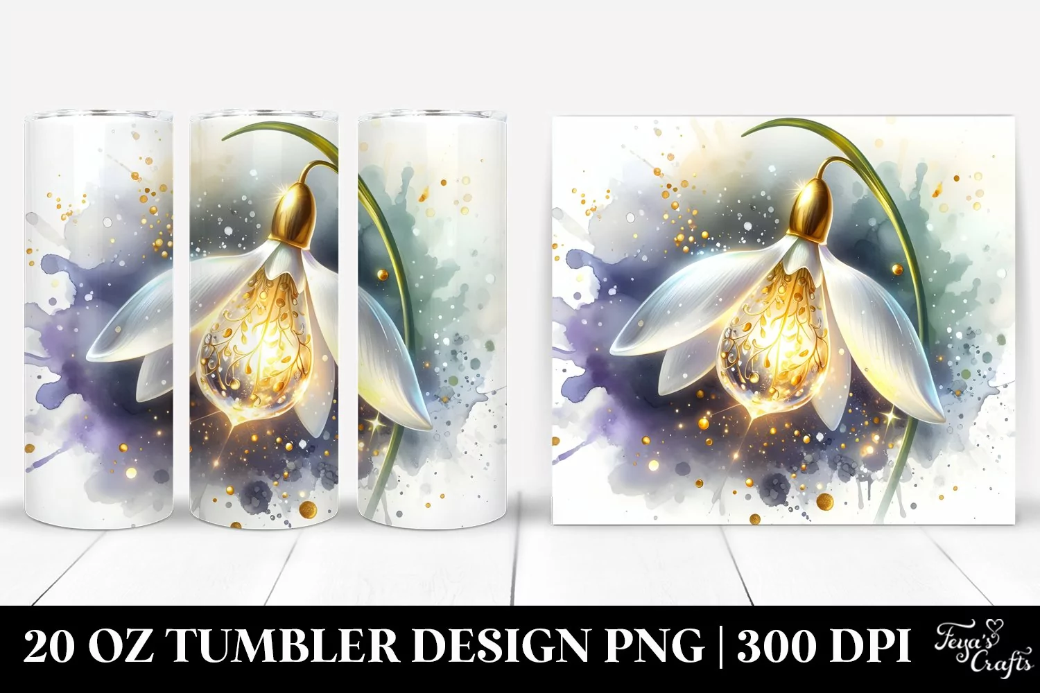 Shiny Snowdrop with Gold Details Tumbler Design