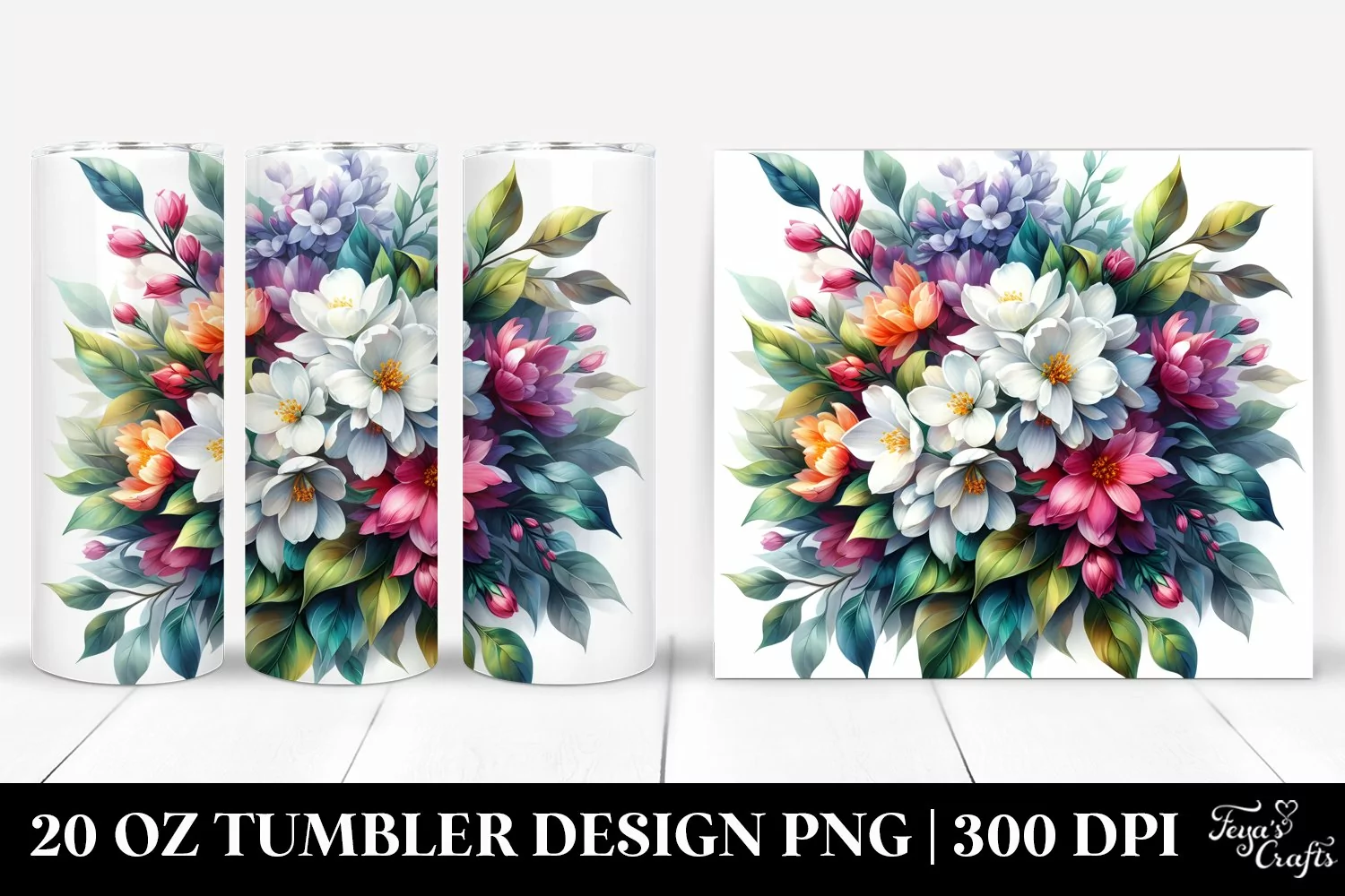 20 Oz Tumbler Sublimation | Colorful Jasmine Bouquet | example image 1