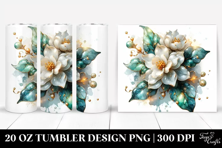 Similar Design Products to 20 Oz Tumbler Sublimation | Jasmine Watercolor Splash