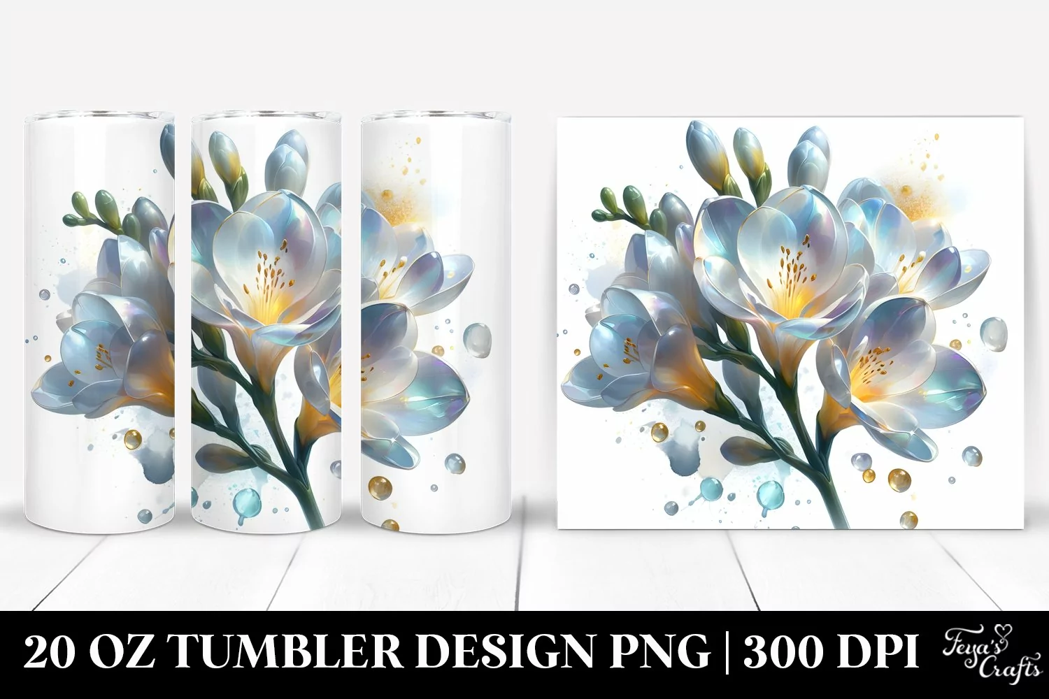 20 Oz Tumbler Sublimation | Glossy Freesia with Golden example image 1