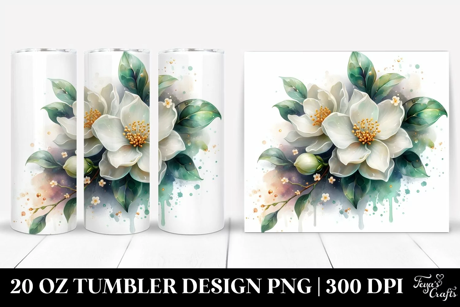 Similar Design Products to Glossy Jasmine Watercolor Splash | 20 Oz Tumbler