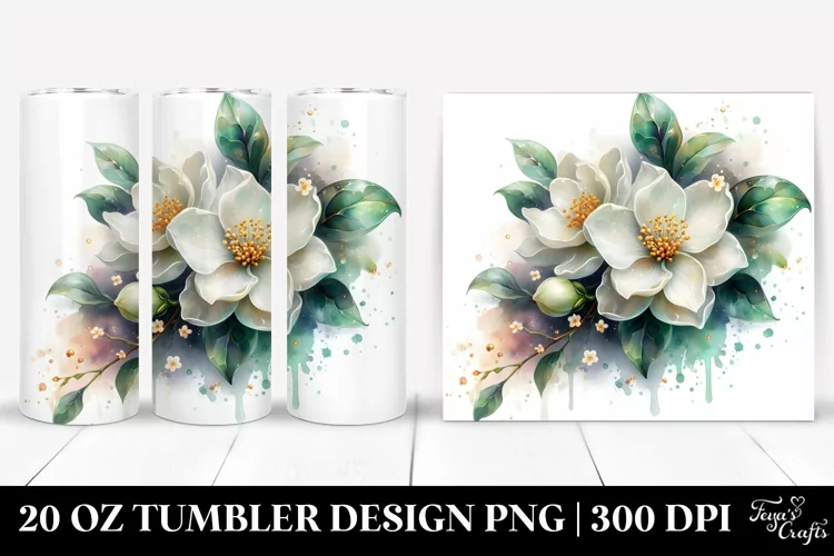 Glossy Jasmine Watercolor Splash | 20 Oz Tumbler example image 1
