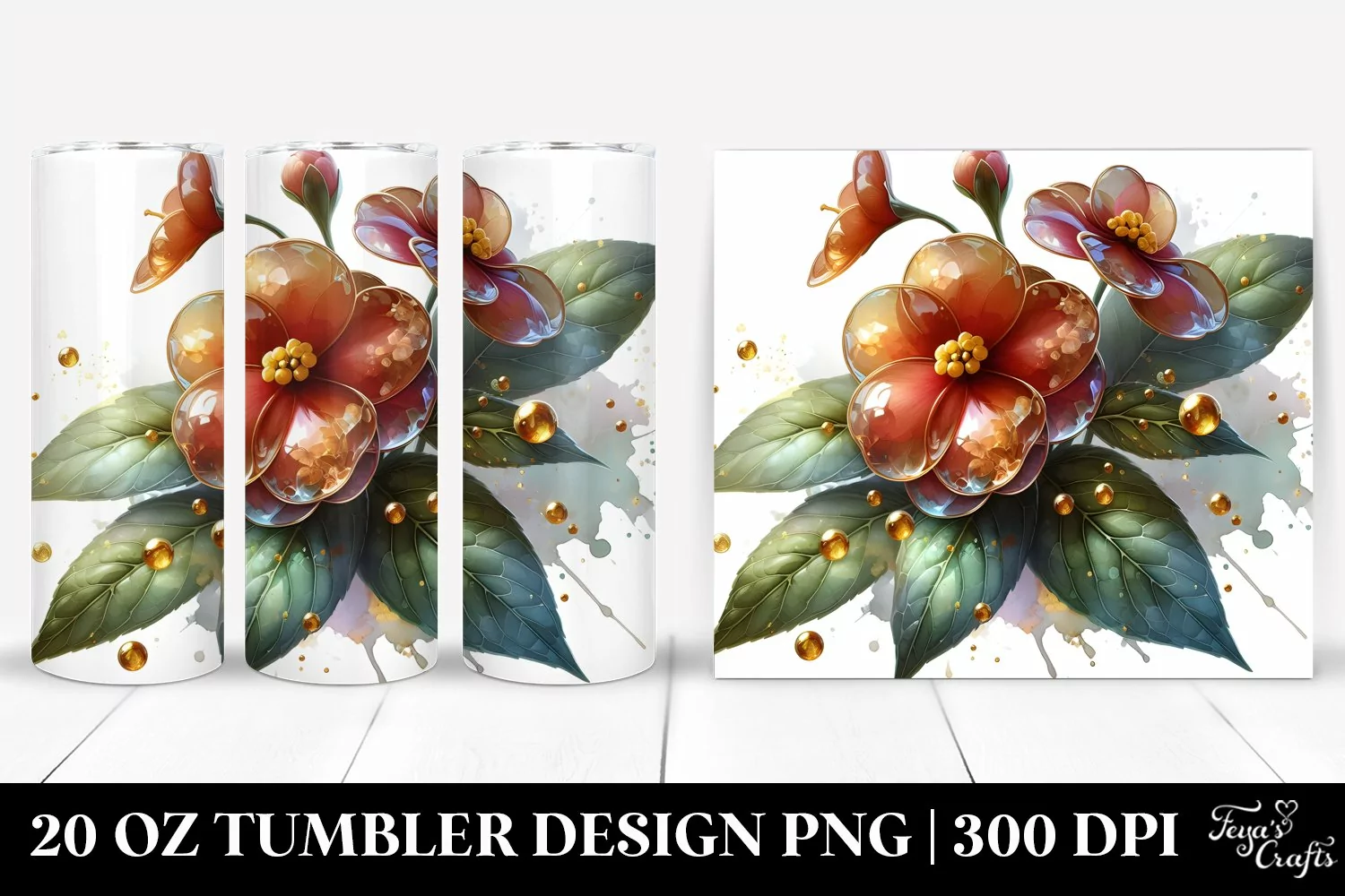 Watercolor Sticker Summer Easter Flower Golden Glass Sublimation Tumbler Impatiens