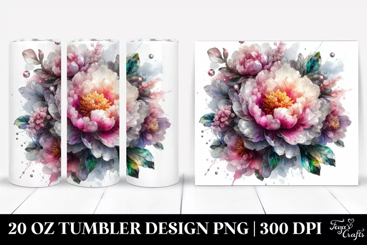20 Oz Tumbler Sublimation | Shiny Peonies Watercolor example image 1