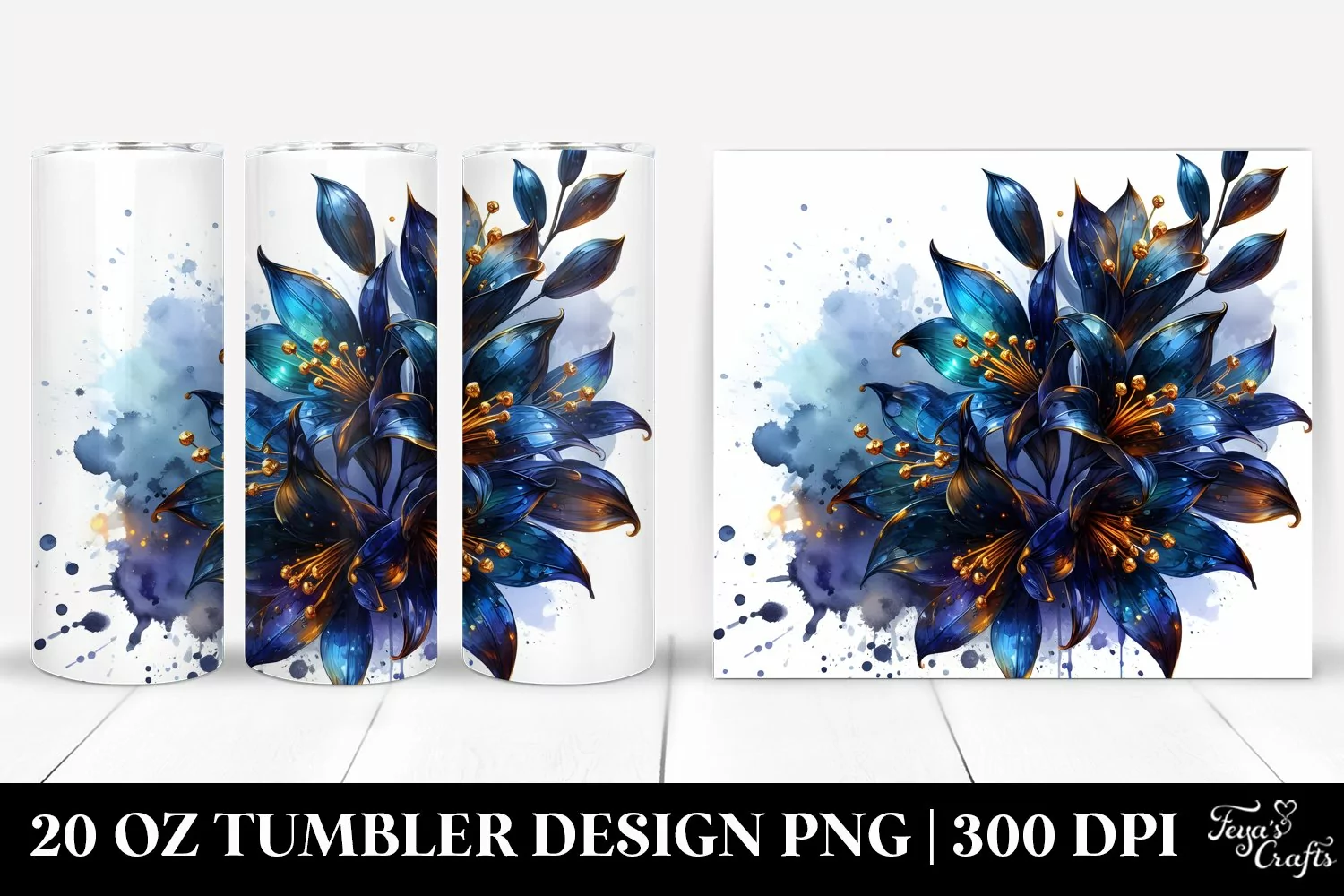 20 Oz Tumbler Sublimation | Golden Lobelia Watercolor Splash example image 1
