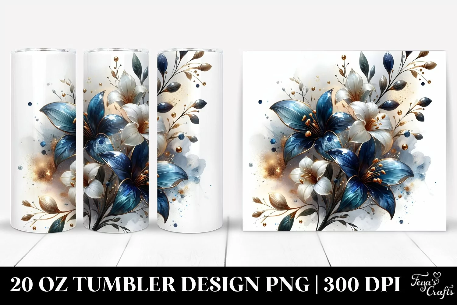 20 Oz Tumbler Sublimation | Golden Lobelia Watercolor example image 1