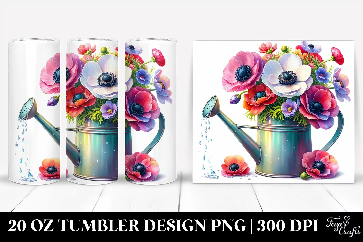 Sticker Summer Easter Colorful Flower Anemone Vibrant Sublimation Tumbler Wateringcan