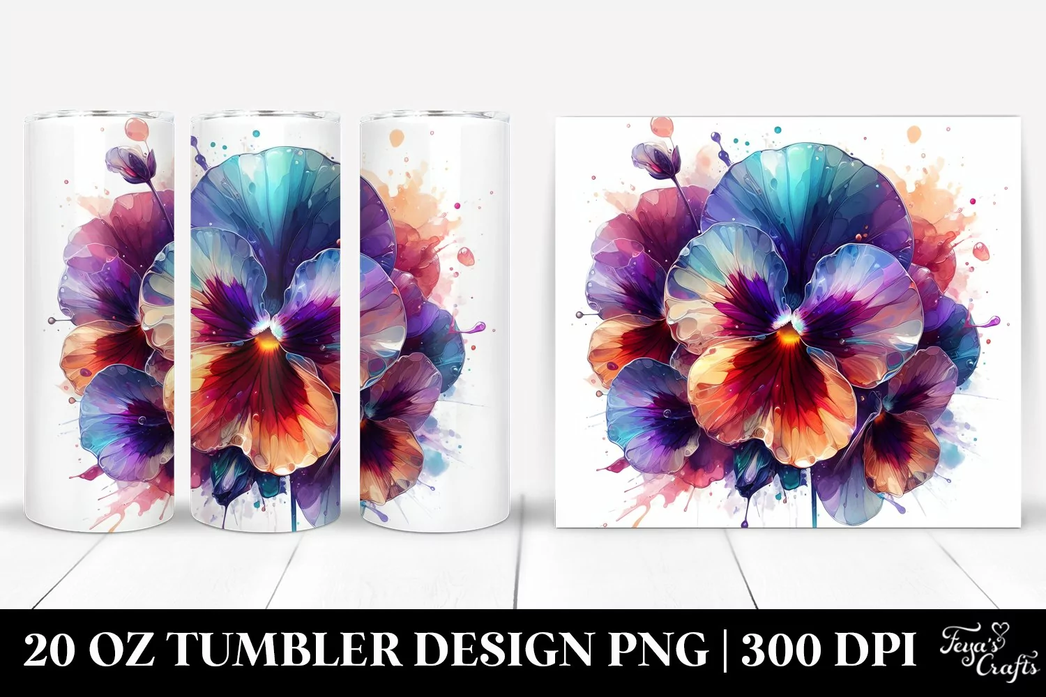 Watercolor Sticker Summer Easter Flower Glossy Splash Sublimation Tumbler Pansy