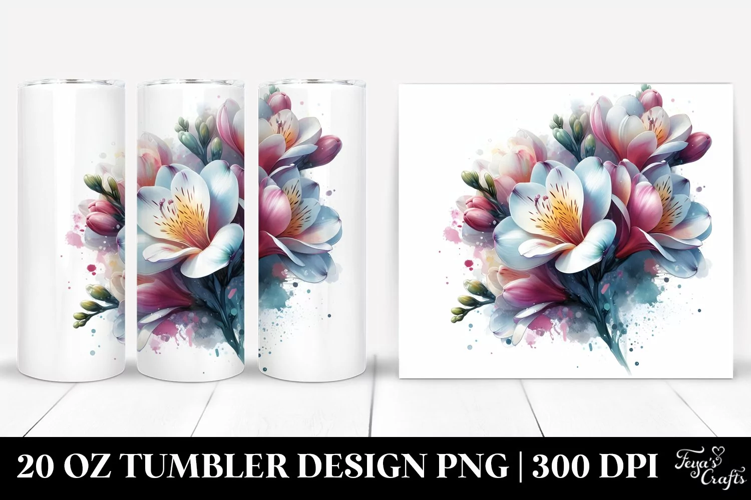 20 Oz Tumbler Sublimation | Glossy Freesia Watercolor example image 1