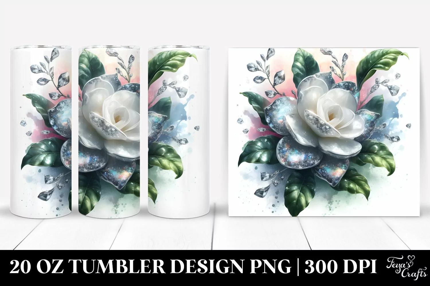 20 Oz Tumbler Sublimation | Shiny Gardenia Watercolor example image 1