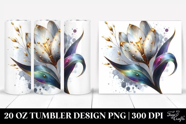 20 Oz Tumbler Sublimation | Golden y Shiny Watercolor Tulip example image 1