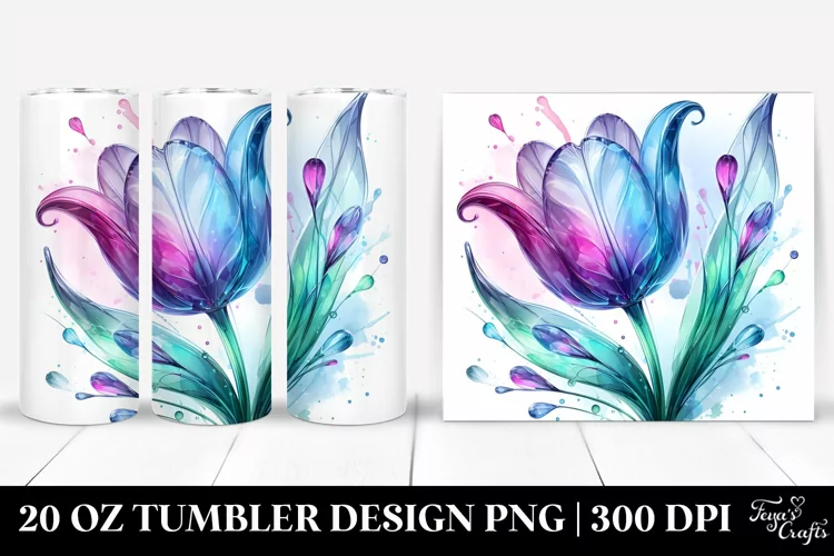 20 Oz Tumbler Sublimation | Glossy Tulip Watercolor Splash example image 1