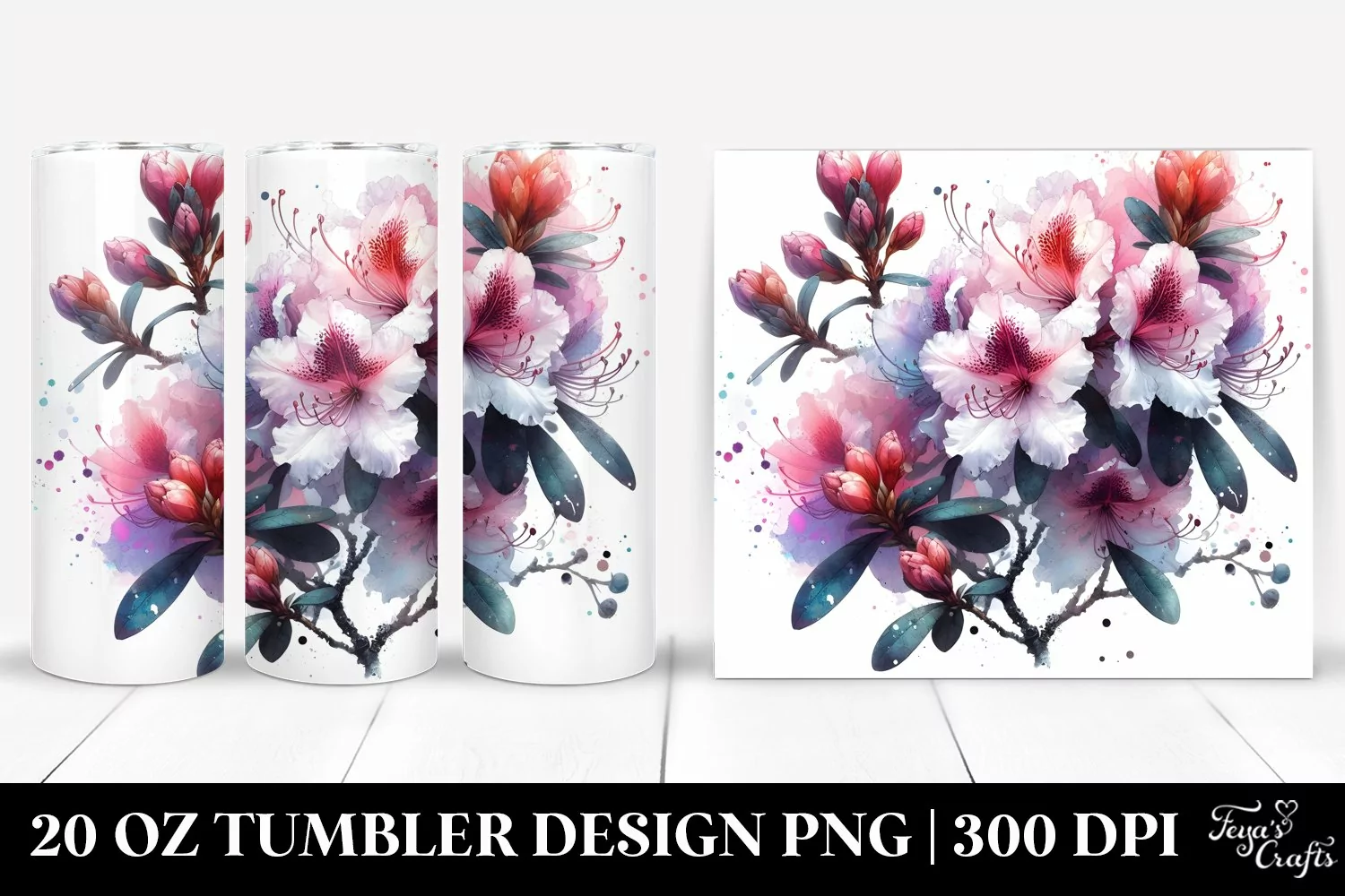 20 Oz Tumbler Sublimation | Watercolor Rhododendron Metallic example image 1