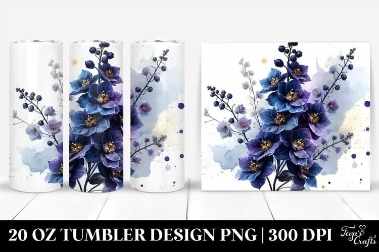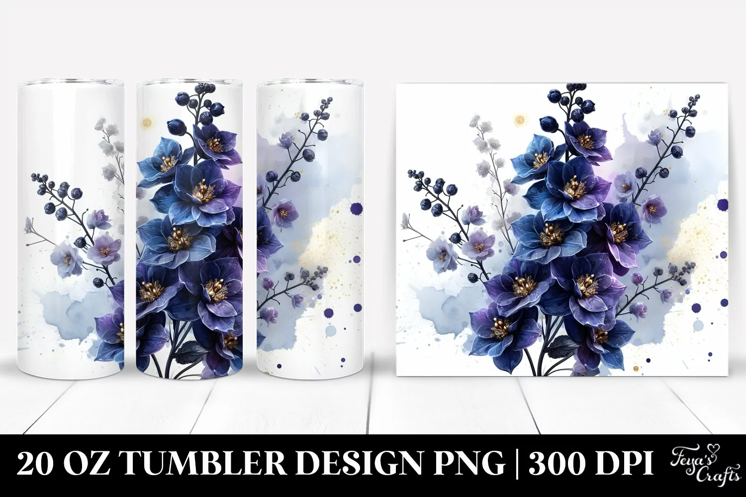 20 Oz Tumbler Sublimation | Golden Delphinium Watercolor example image 1