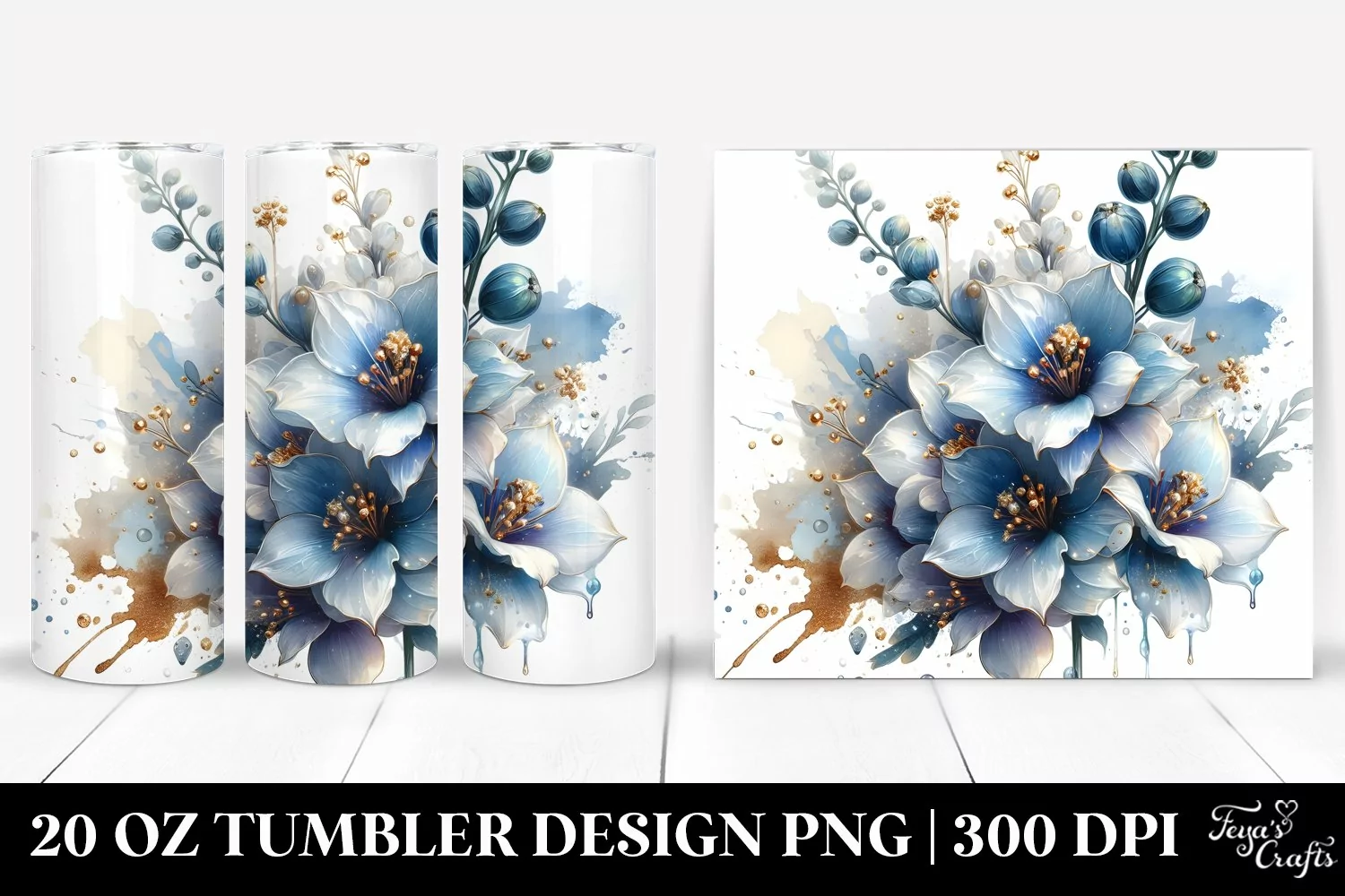 20 Oz Tumbler Sublimation | Golden Delphinium Watercolor example image 1