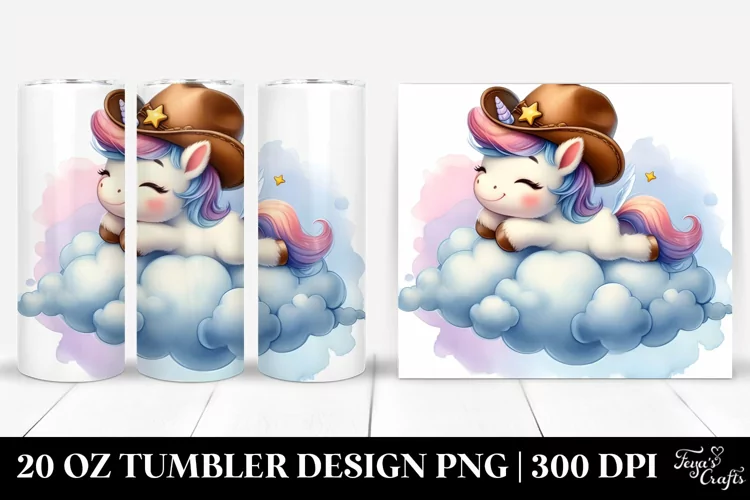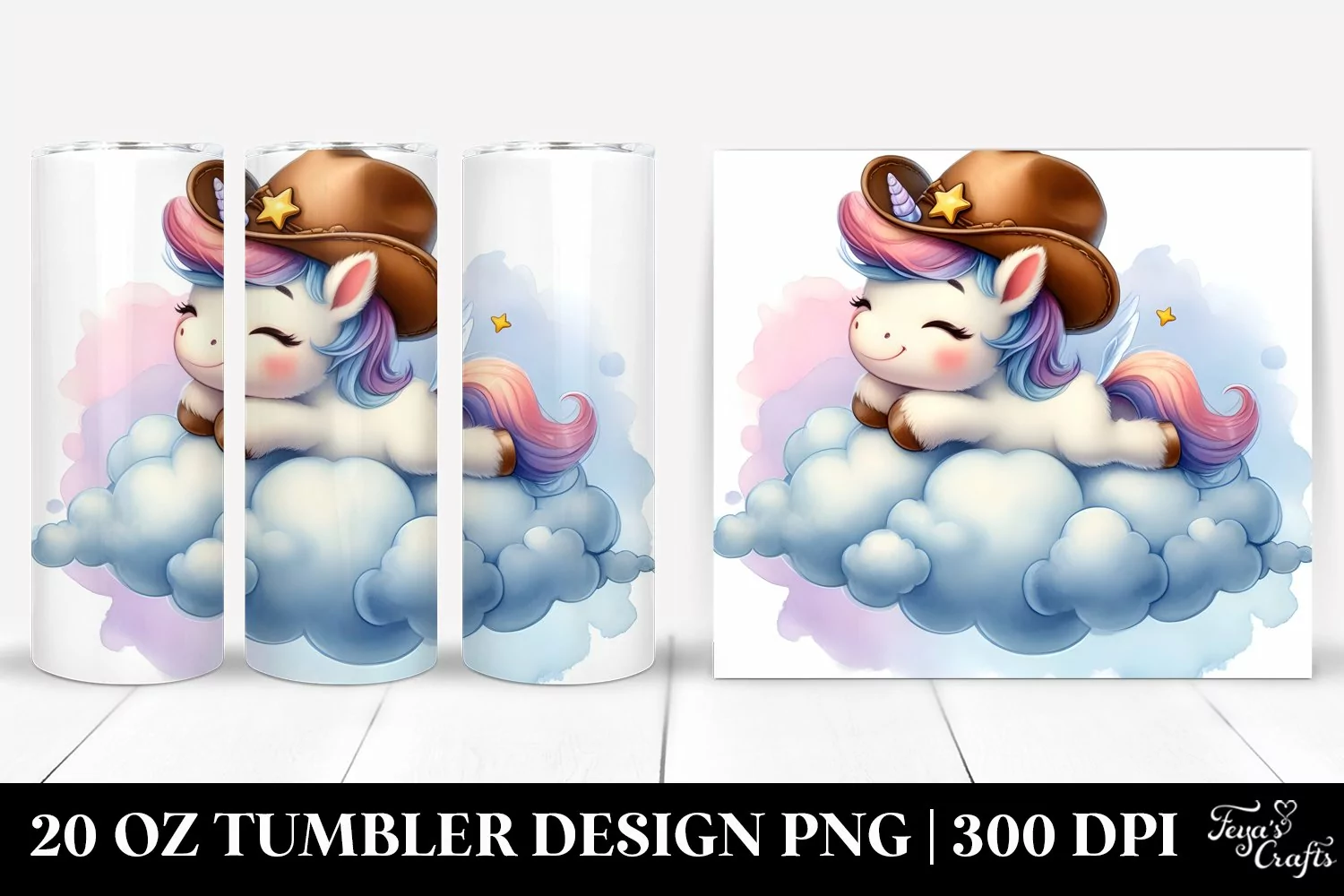 20 Oz Tumbler Sublimation | Pastel Baby Unicorn with Cowboy example image 1
