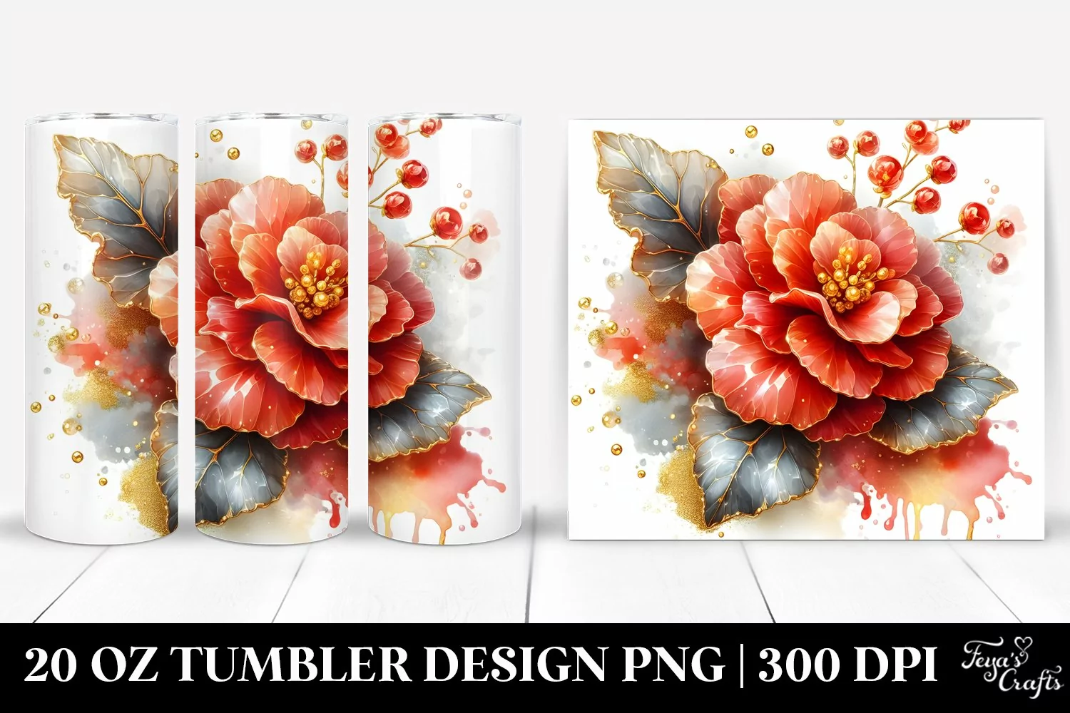 20 Oz Tumbler Sublimation | Shiny Golden Watercolor Begonia example image 1