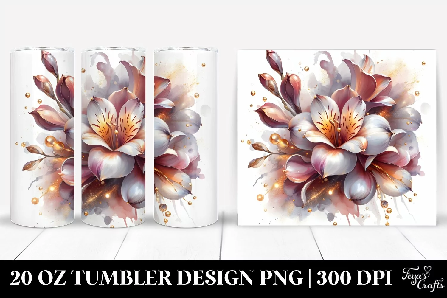 Sticker Summer Easter Flower Golden Abstract Sublimation Tumbler Freesia Insertions