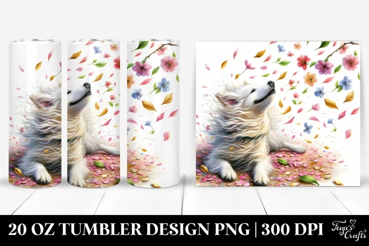 Dog Tumbling with Spring Petals Watercolor | Tumbler example image 1