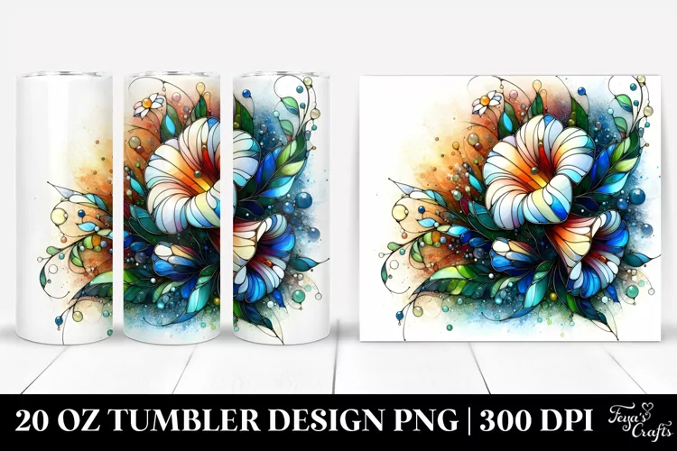 Similar Design Products to 20 Oz Tumbler Sublimation | Colorful Morning Glory Stained