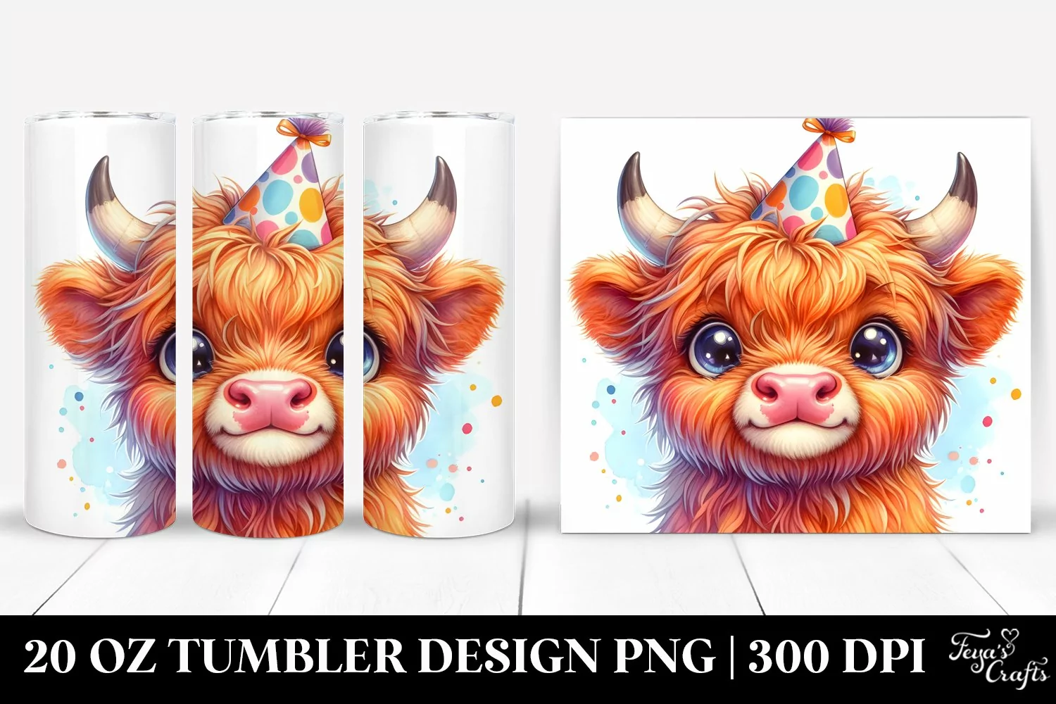 20 Oz Tumbler Sublimation | Vibrant Watercolor Baby Highland example image 1